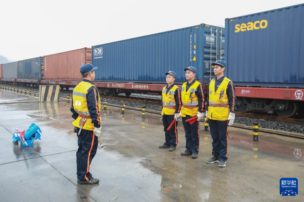 11月30日,贵阳南车辆段工作人员准备对中欧班列进行开行前的检查。新华社记者 刘续 摄
