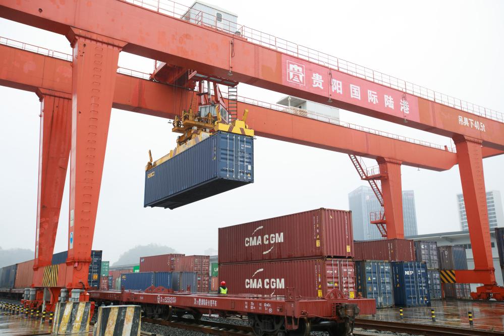 11月30日,一列中欧班列开出贵阳国际陆港都拉营站。