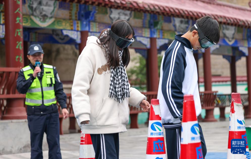 12月1日,在贵州省铜仁市玉屏侗族自治县黔东民族寄宿制中学,学生体验“酒醉驾驶”。新华社发(胡攀学摄)