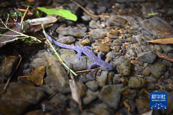 这是11月28日拍摄的贵州宽阔水国家级自然保护区内的国家二级保护动物宽阔水拟小鲵。新华社记者 周宣妮 摄
