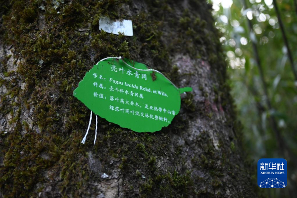 这是11月28日拍摄的亮叶水青冈的树干。新华社记者 周宣妮 摄