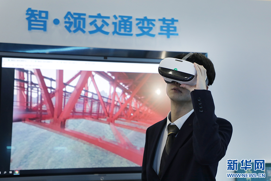 12月2日,与会嘉宾在大会展览现场体验贵州高速集团科技创新成果。新华网 卢志佳 摄