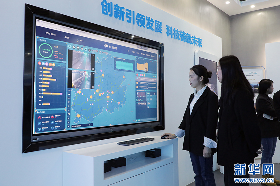 12月2日,与会嘉宾在大会展览现场参观贵州高速集团科技创新成果。新华网 卢志佳 摄
