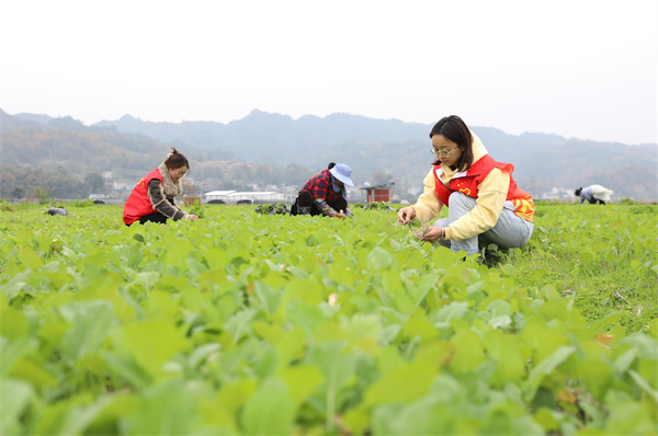 一眼望去,绿油油的油菜苗郁郁葱葱,农户和志愿者们正忙着打窝、移栽油菜苗,呈现出一派繁忙的秋冬种劳作景象。