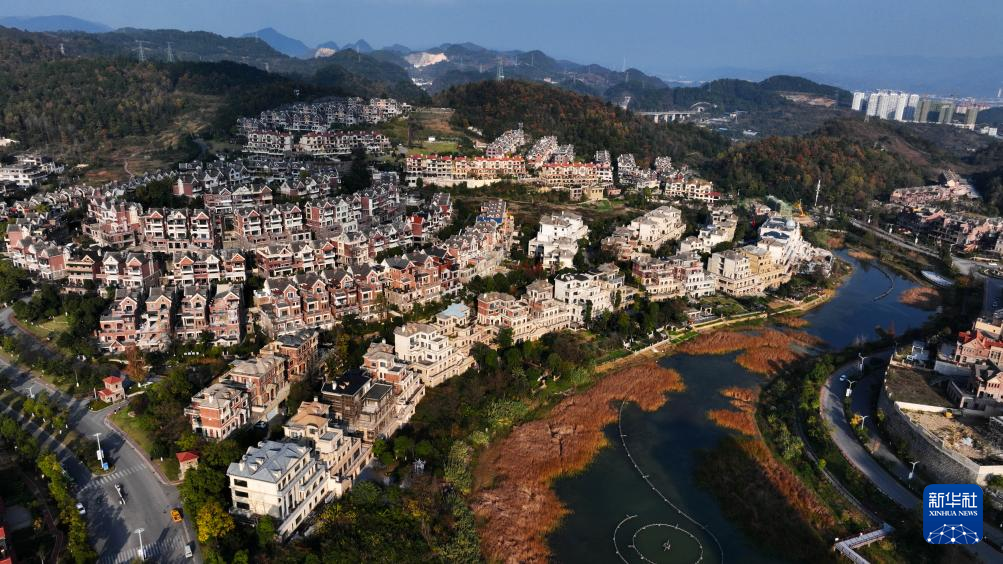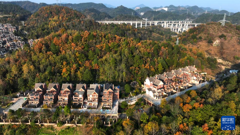 冬日里,贵阳市乌当区的山林、公路、民居在夕阳的映照下景美如画。