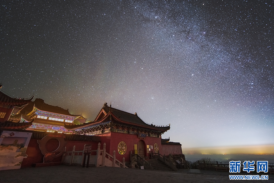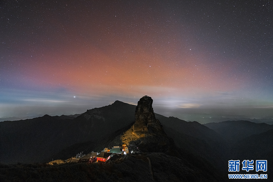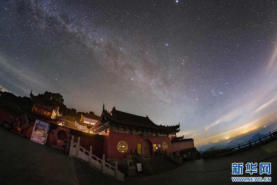 近日,天气晴好,位于贵州省铜仁市境内的世界自然遗产地梵净山,在浩瀚的星空下,犹如仙境一般。