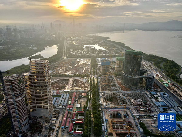 位于深圳市南山区的深圳湾超级总部基地建设现场(无人机照片,2023年8月26日摄)。新华社记者 周科 摄
