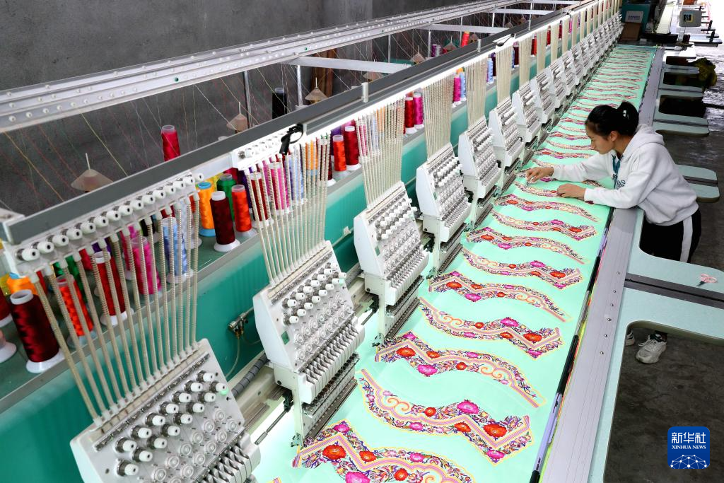 12月15日,工人在贵州省榕江县忠诚镇一家纺织企业生产车间赶制刺绣产品。新华社发(李长华摄)