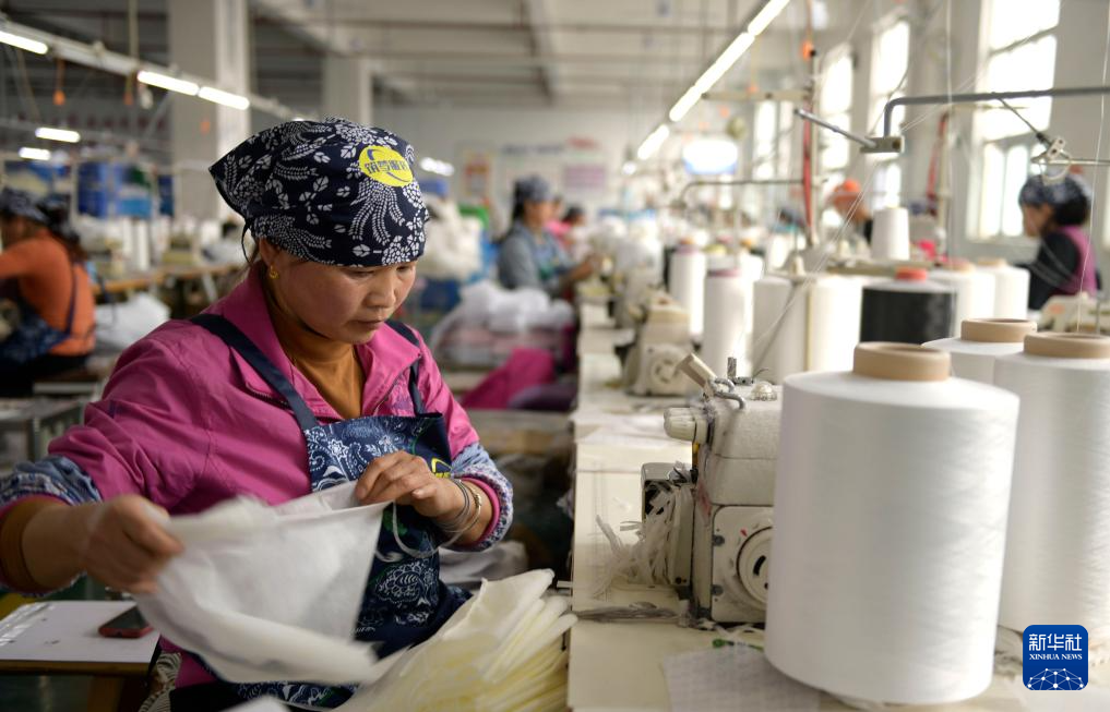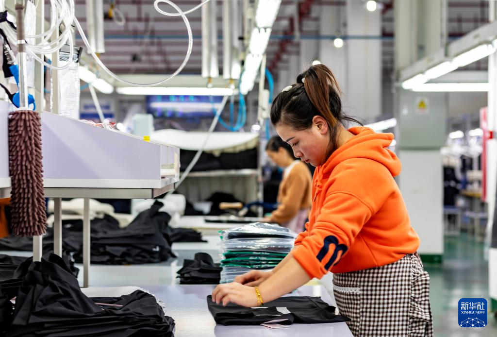 12月15日,工人在贵州省黔西市一家服饰企业生产车间赶制订单产品。新华社发(范晖摄)