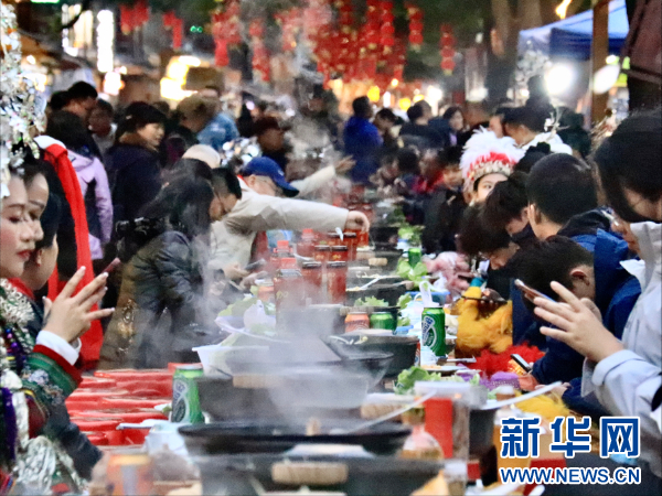 欢乐侗年团圆宴席上,许多游客慕名而来。新华网发(方永琼 摄)