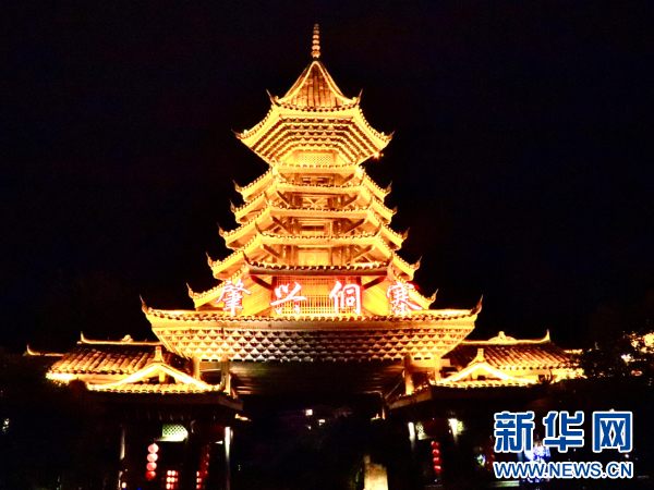 肇兴侗寨夜景。新华网发(方永琼 摄)
