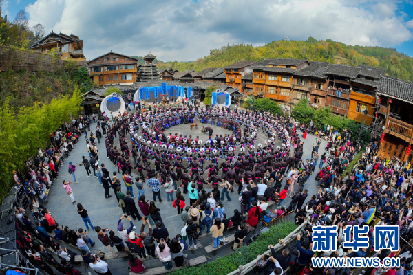 来自当地及周边的少数民族群众在贵州省黎平县肇兴侗寨演唱侗族大歌。新华网发(龙建睿 摄)