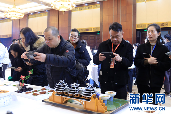 参会嘉宾用手机记录各色菜品。新华网 李涛涛 摄