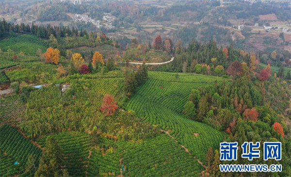 1月1日,航拍普安县茶源街道联盟村的一片茶园。新华网 卢志佳 摄