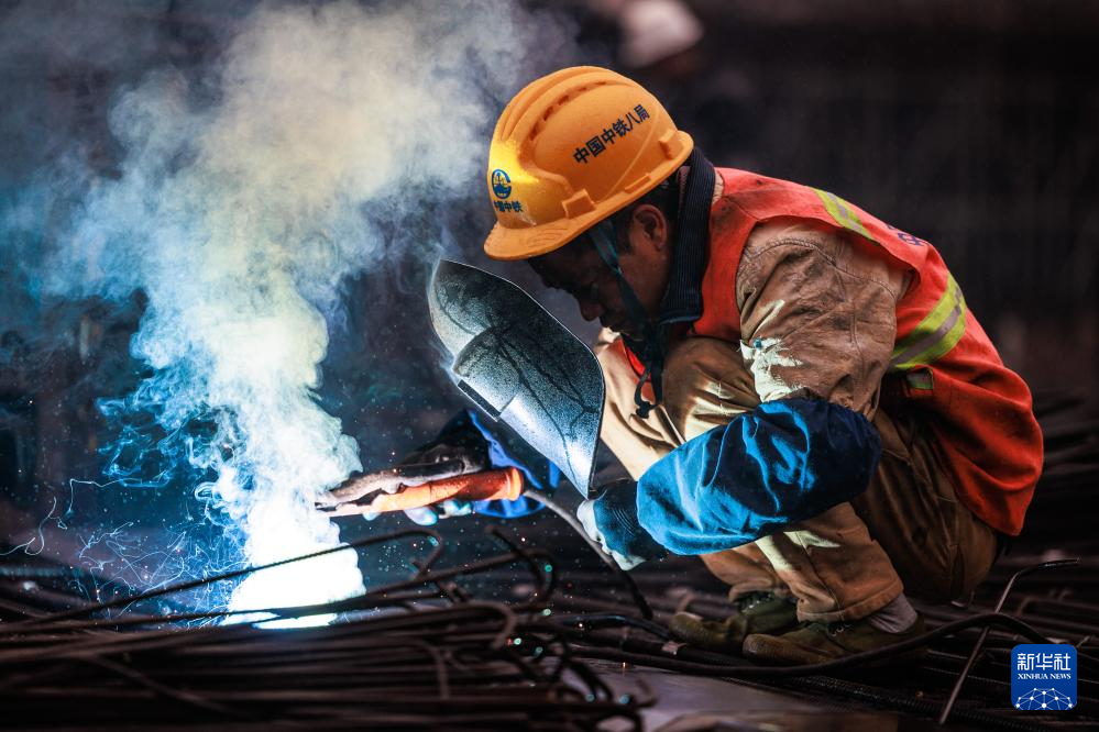 1月2日,中铁八局的建设者在贵州双龙航空港航空偏好型产业园项目施工。新华社记者 刘续 摄