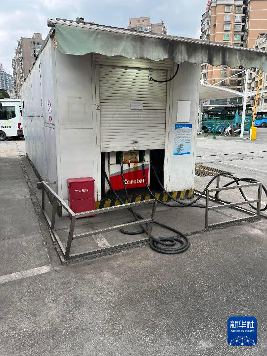 西部某省一地级市客运总站内的一台撬装罐。新华社记者 摄
