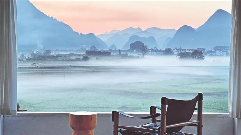 从民宿的窗户向外望去,冬日的平流雾将万峰林装扮得宛若仙境。黄崇星 摄