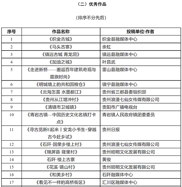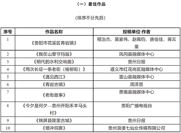 在交流分享环节,贵州省城镇化发展中心负责人作工作交流发言。贵州日报、贵阳广播电视台、凤冈县融媒体中心、网络人士代表程治杰作短视频作品创作经验交流分享,获奖代表以自身作品创作为背景,讲述创作经历,分享创作感悟,展示各自出圈出彩的短视频作品,相互探讨移动互联网时代如何发现、挖掘、创作、传播贵州历史文化保护传承优秀视频作品。