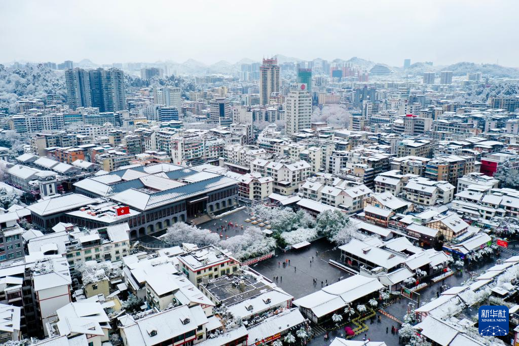 1月22日,贵州遵义迎来了2024年的第一场雪,整个城区银装素裹、雪景如画,遵义会议会址小楼在白雪的映衬下也显得更加宁静庄重。