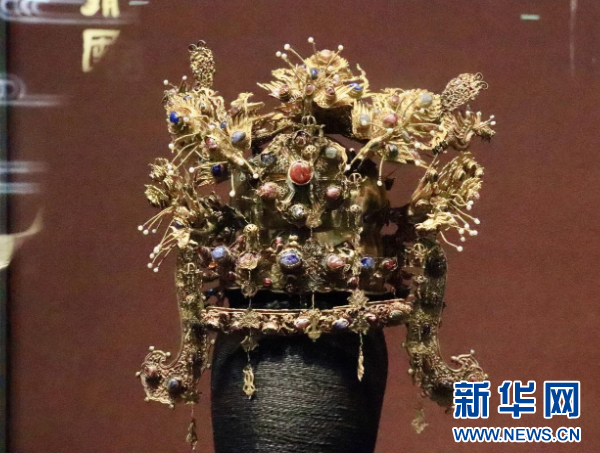 展馆内播州杨氏金凤冠。新华网发(方永琼 摄)