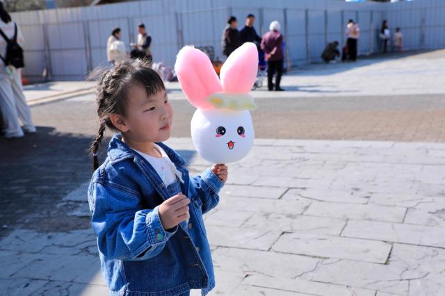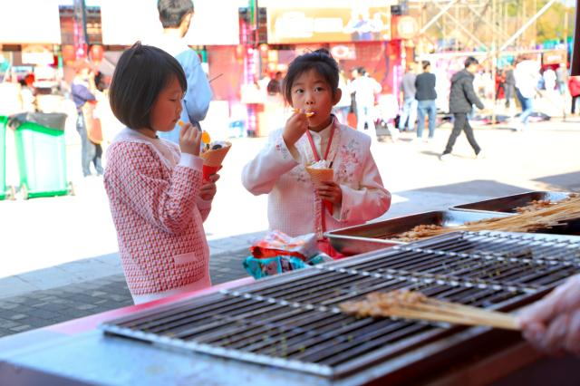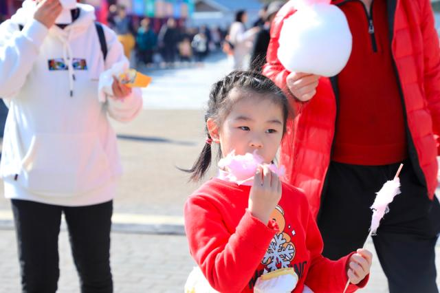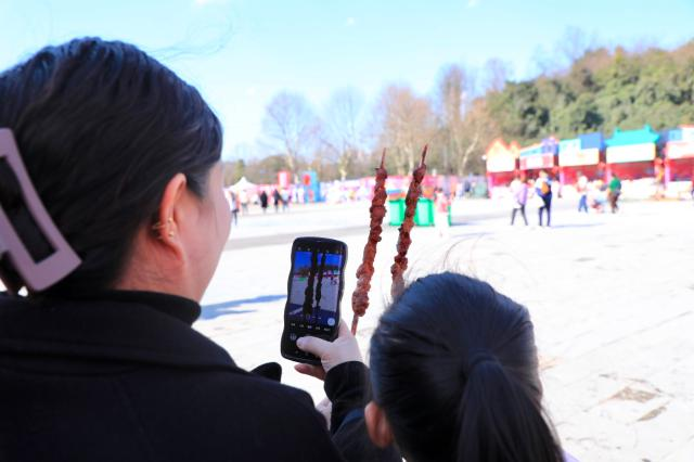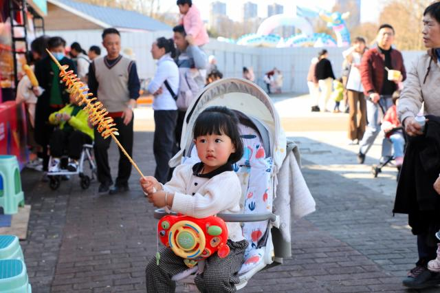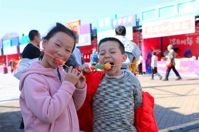 “美女家长带着她的小闺蜜,打卡庙会美食~”