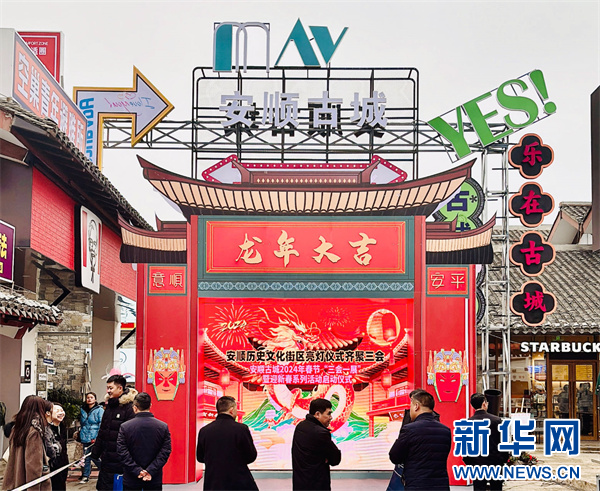 新华网贵阳2月8日电 2月7日,安顺古城2024年春节“三会一展”暨迎新春系列活动启动仪式举行。据悉,2月7日至24日,安顺旅游集团有限公司将在古城历史文化街区举办以“龙腾盛世迎新春·灯会庙会玩古城”为主题的“三会一展”暨迎新春系列活动。