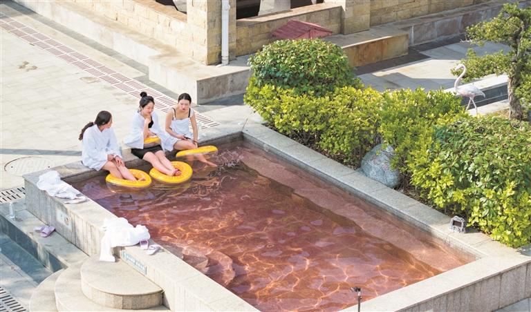 游客在六枝龙井温泉泡汤。记者 尚宇杰 摄