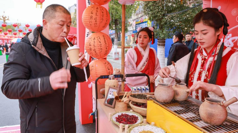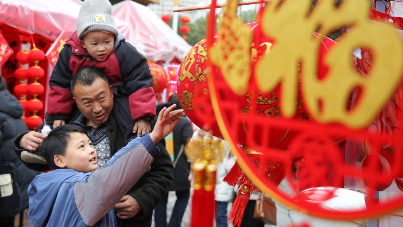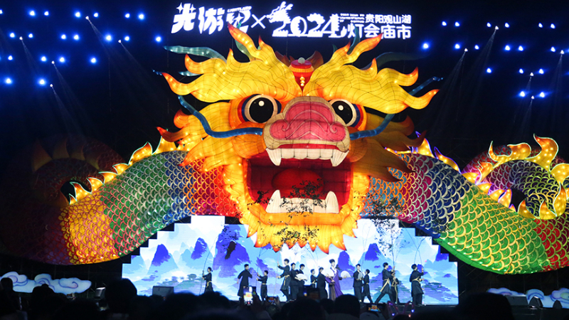 当日是农历大年初二,贵州省毕节市同心步行街上挂满红灯笼,年味浓郁,舞狮、彩龙表演等一系列新春活动吸引不少游客前来逛街赏景,欢度春节假期。
