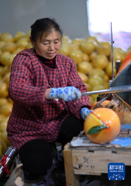 1月8日,在岑巩县注溪镇周坪村,村民在整理柚子。新华社发(杨云摄)