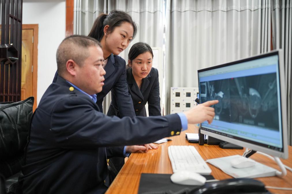 在中国铁路成都局集团有限公司贵阳南车辆段5T运用车间,铁路货车运行故障动态图像监测系统对通过铁轨线路的列车进行高速摄像,图片信息传回地面分析中心后,再由动态检车员查找研判列车故障和安全隐患。5T检车员们在春运期间每天要对约300列货车进行检测,查看约90万张照片,默默守护春运安全。