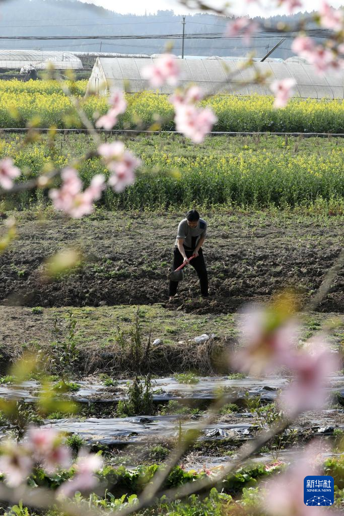 当日是雨水节气,各地农民抢抓农时忙农事,田间地头一派生机勃勃的农忙景象。