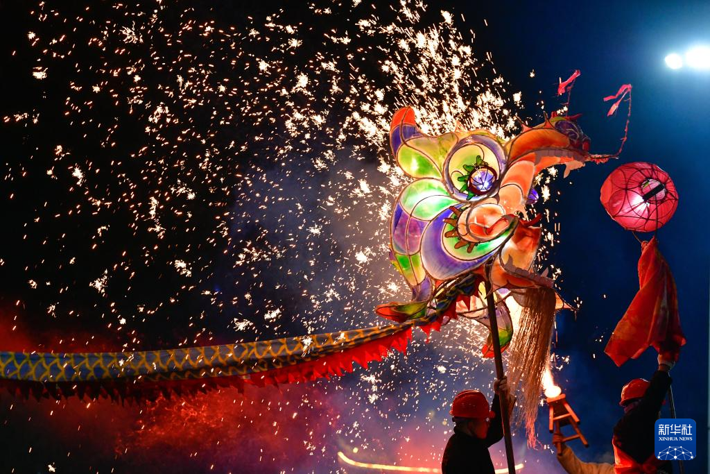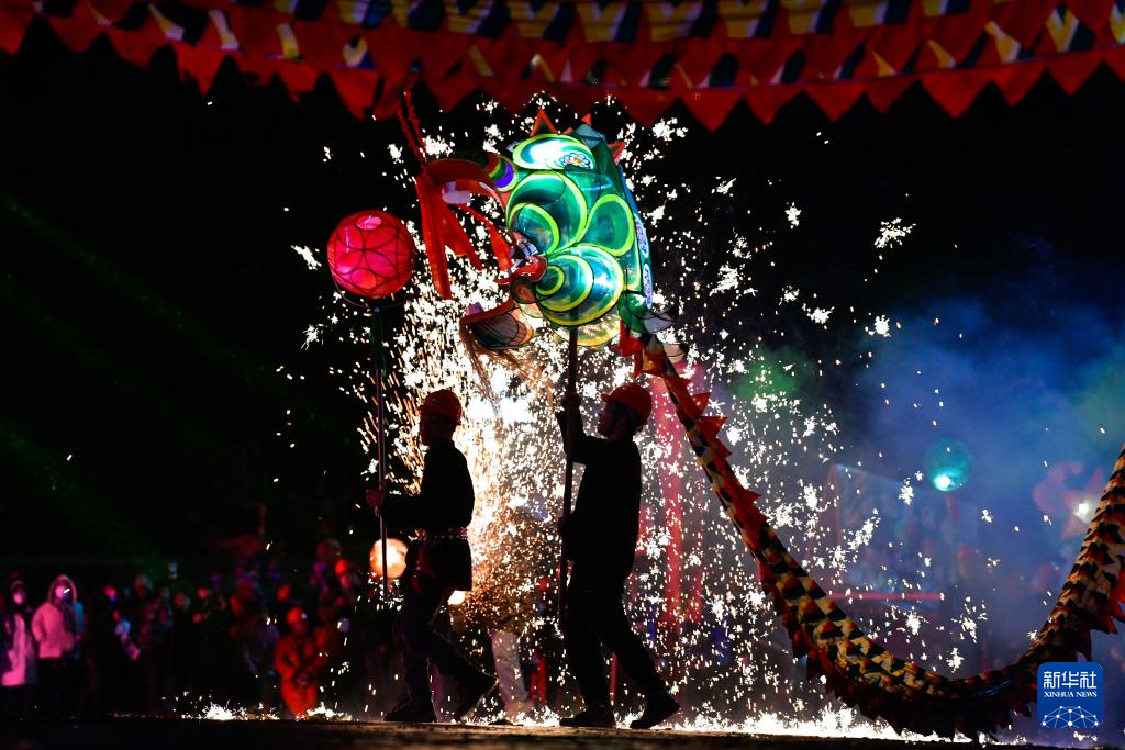 2月23日晚,人们在贵州省台江县参加苗族“舞龙嘘花”活动。新华社记者 杨文斌 摄