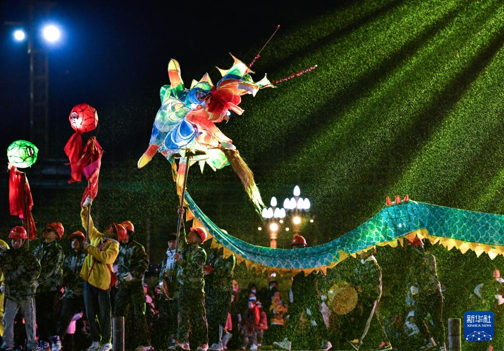 2月23日晚,人们在贵州省台江县参加苗族“舞龙嘘花”活动中展示花灯。新华社记者 杨文斌 摄