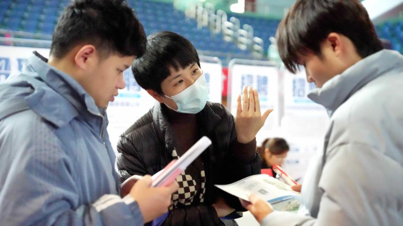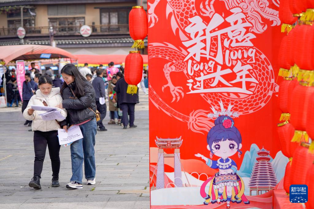 2024年2月19日,求职者在贵州省黔东南苗族侗族自治州丹寨县万达小镇“春风行动”暨东西部劳务协作招聘会上了解岗位信息。