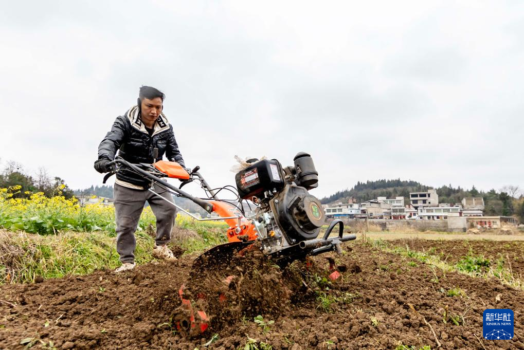 2月27日,农民在贵州省黔西市莲城街道老鸹河社区翻耕土地。