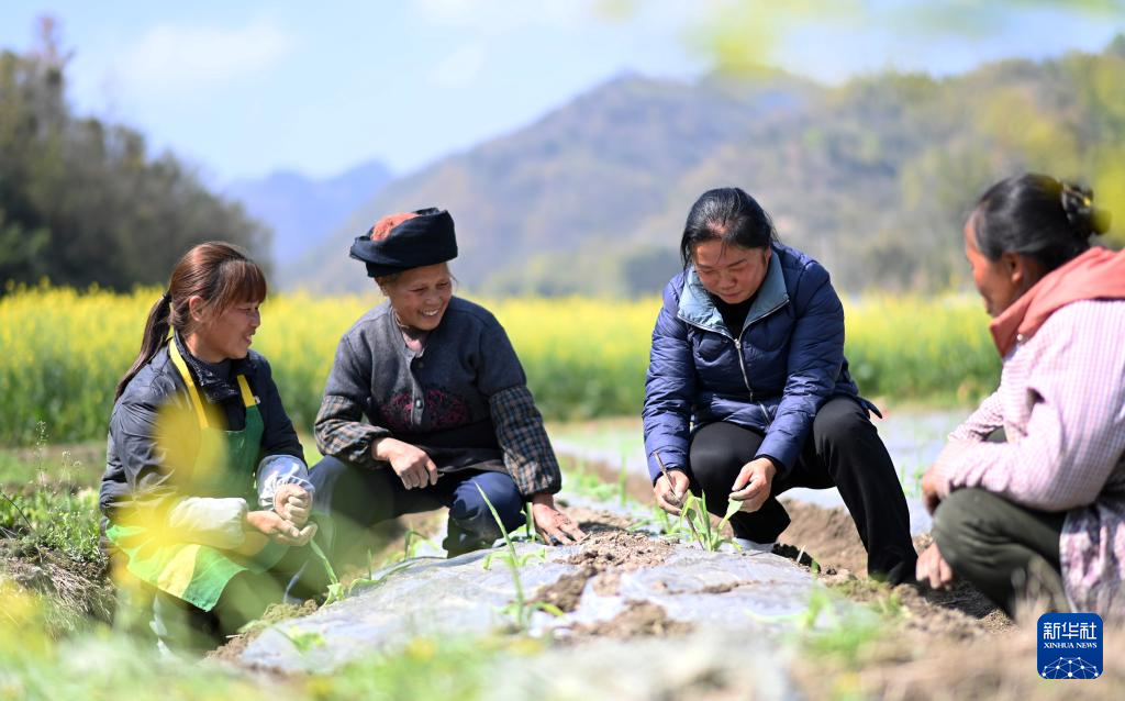 初春时节,在贵州省黔南布依族苗族自治州罗甸县逢亭镇粤港澳大湾区蔬菜保供基地,村民们开展育苗、栽种、管护、施肥等农事活动,一派早春人勤的繁忙景象。