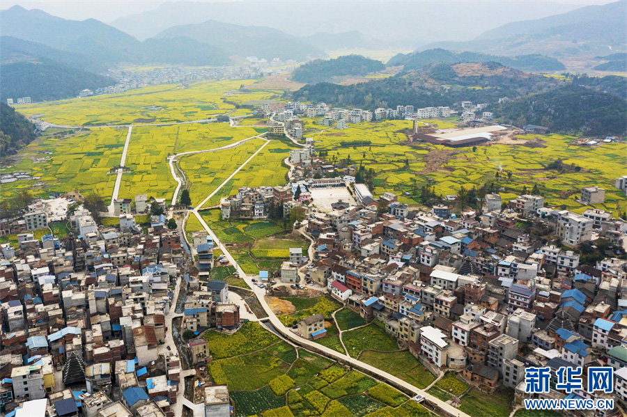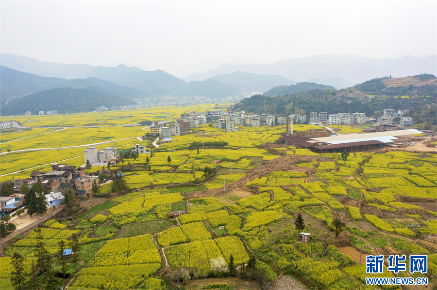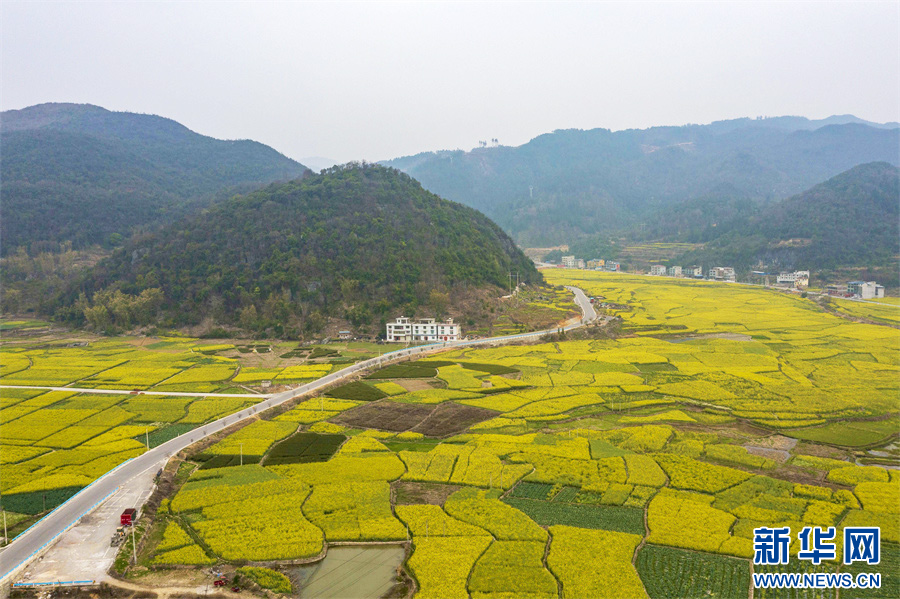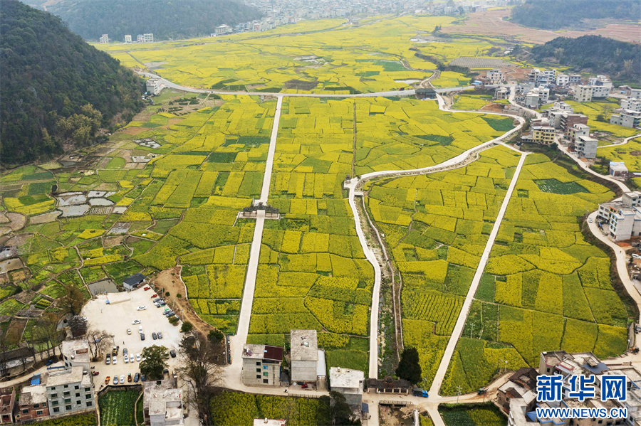 连日来,气温回升,贵州省黔东南苗族侗族自治州从江县油菜花竞相绽放,春意盎然,金黄的花海将乡村点缀得如诗似画。
