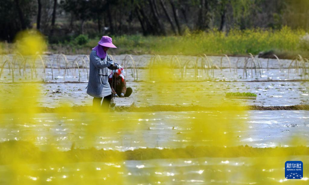 3月9日,村民在贵州省黔东南苗族侗族自治州黄平县旧州镇东门村移栽菜苗。新华社发(陈孝新 摄)