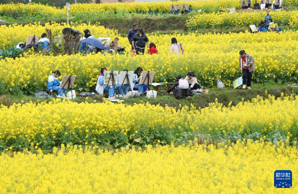 3月16日,人们在贵州省黔东南苗族侗族自治州黄平县旧州镇白纸桥村写生游玩。