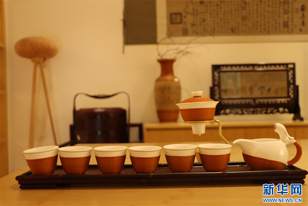 3月20日,在贵州省赤水市大同镇极竹堂非遗竹编产学研基地,竹编工艺品展示。新华网发(张浪摄)
