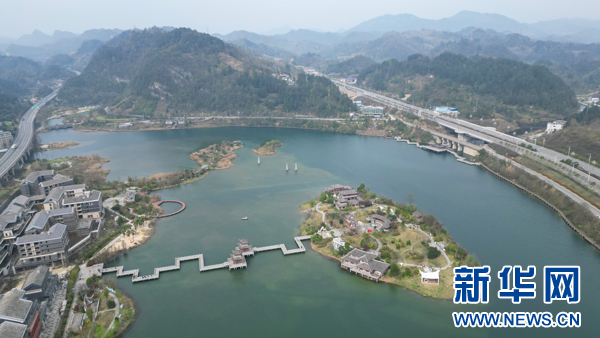 都匀市三江堰水生态公园(无人机照片)。新华网 李涛涛 摄