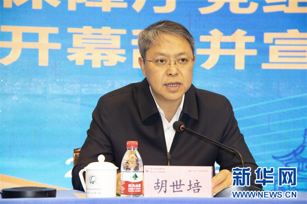 贵州省人力资源和社会保障厅党组成员、副厅长胡世培致开幕辞并宣布大赛开幕。新华网发(冉嫒嫒摄)