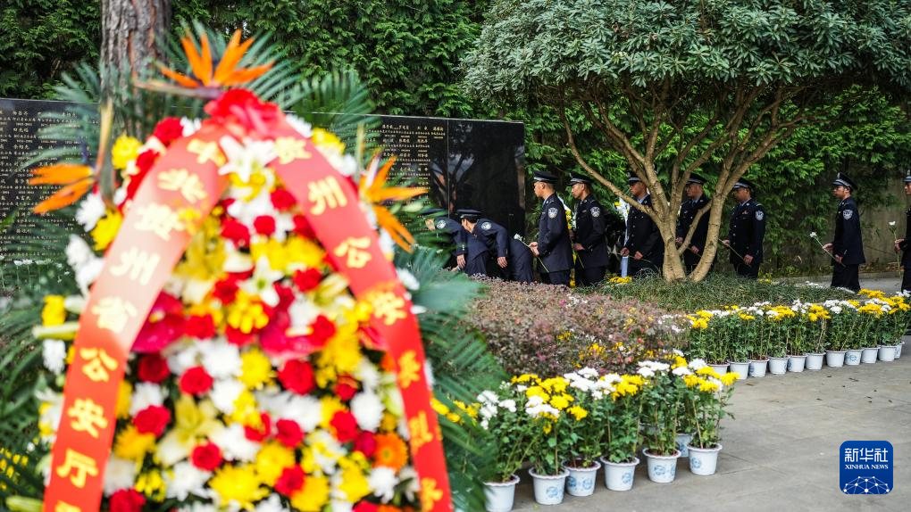 清明前夕,贵州省公安厅在贵州公安英烈纪念墙举行纪念活动,缅怀英烈,寄托哀思。