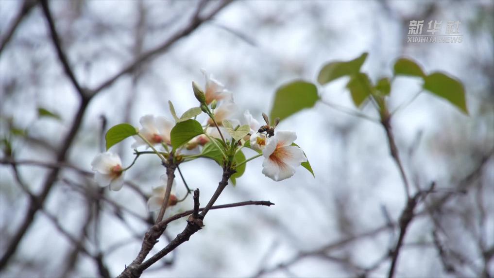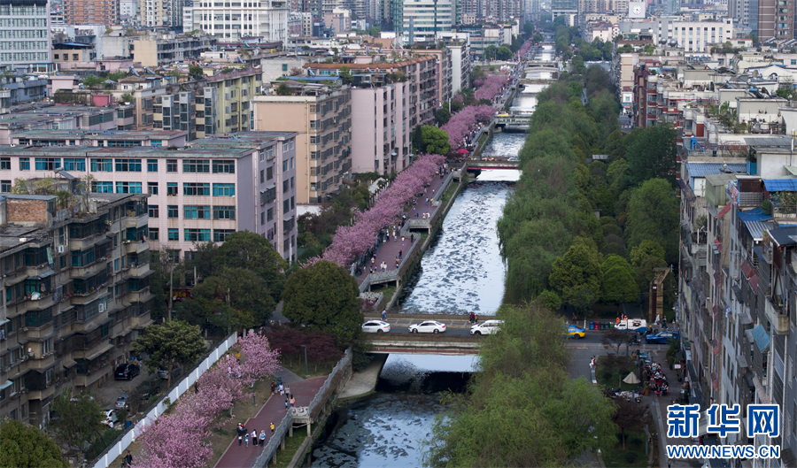 4月2日,贵州省六盘水市水城河畔的樱花绽放。新华网发(尚宇杰 摄)