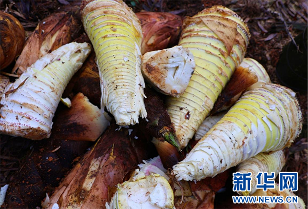 新鲜出土的春笋。新华网发(孔祥乔 摄)