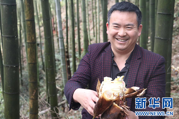 自媒体达人徐青勇在挖笋。新华网发(孔祥乔 摄)