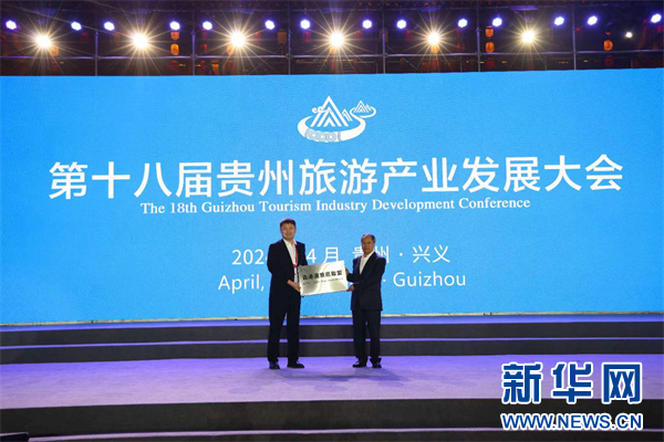 图为向第十九届贵州旅游产业发展大会承办地安顺市授旗。新华网发