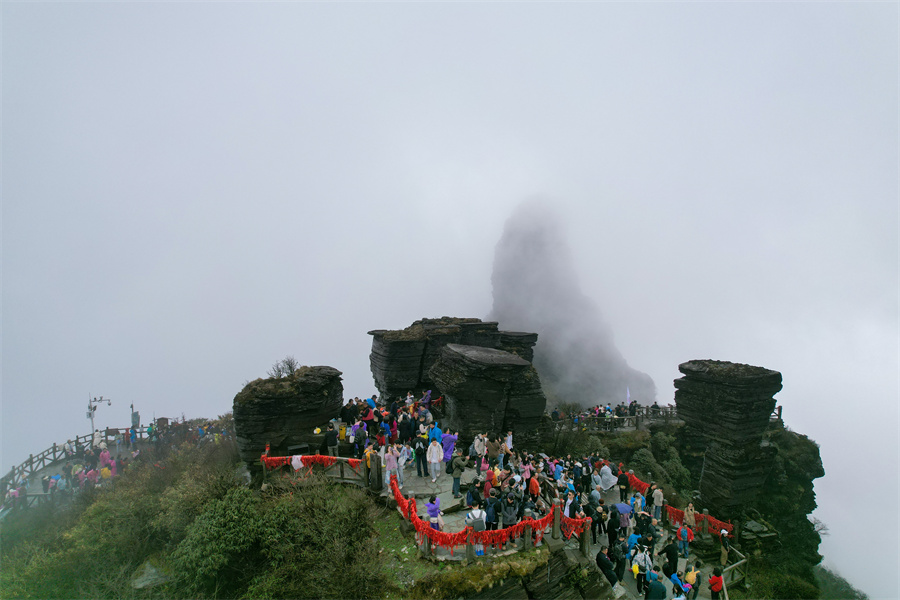 4月10日,游客在梵净山游玩。新华网发