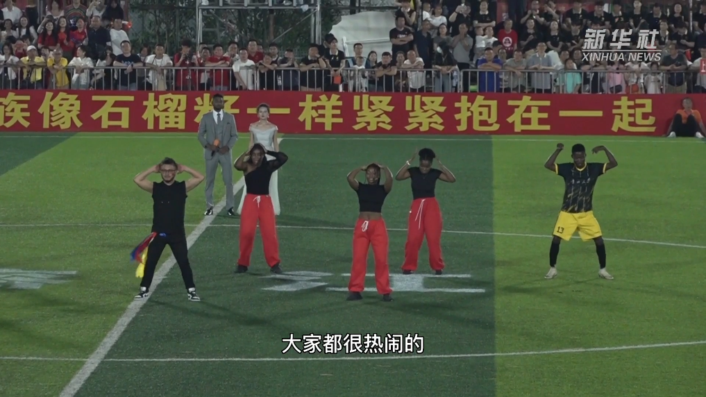 快乐“村超”,活力四射,越来越具国际范儿。13日,贵州“村超”赛场上迎来贵州大学留学生足球队对阵上饶渣渣灰江西米粉队。来自37个国家的118名留学生代表带来了多国美食和歌舞表演。