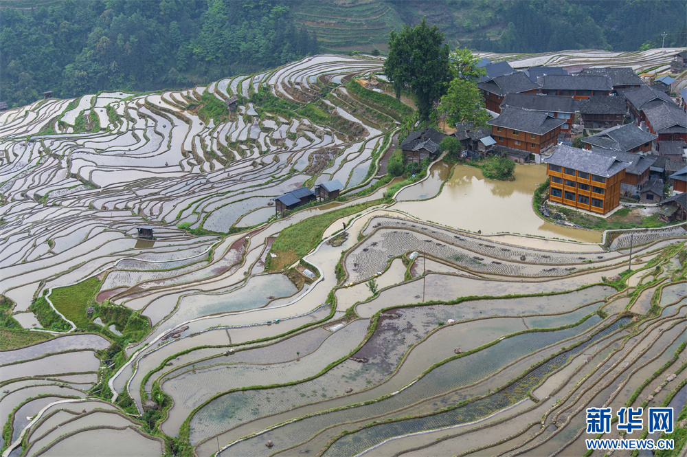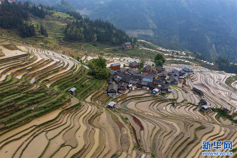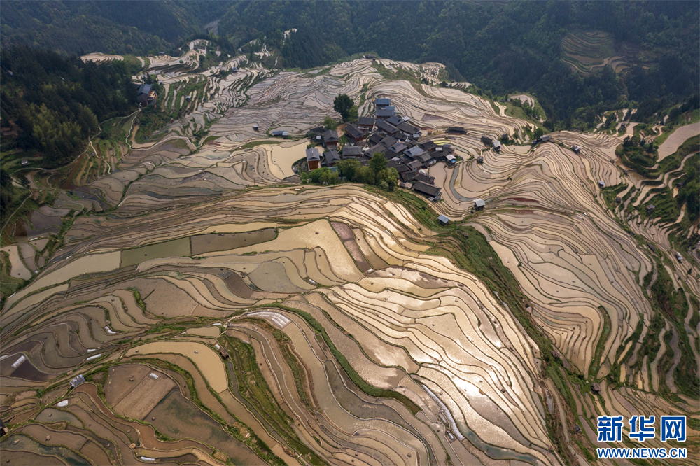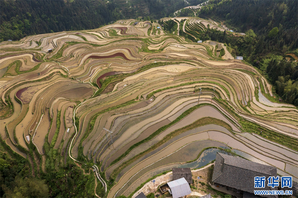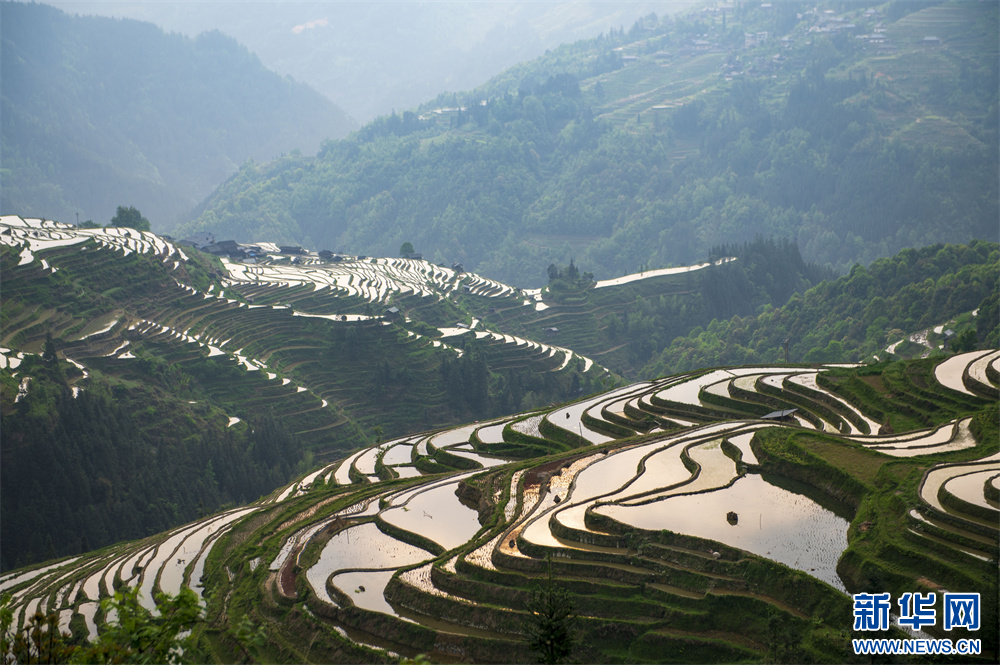 4月16日在贵州省从江县加榜梯田景区拍摄的梯田风光。新华网发(吴德军摄)